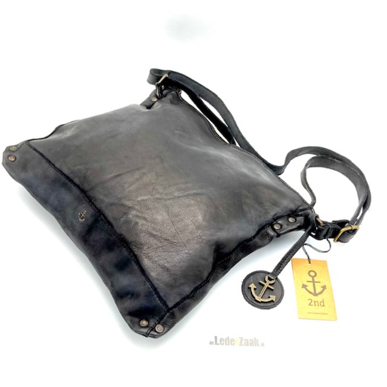 Handige platte schoudertas van mooi soepel leer. Aan de binnenzijde is de tas voorzien van een handig ritsvak en 2 steekvakken voor o.a. een mobiele telefoon. Tevens is de tas voorzien van een verstelbare draagriem. Afmetingen: Hoogte 31.5cm x breed 34cm x diep 1cm