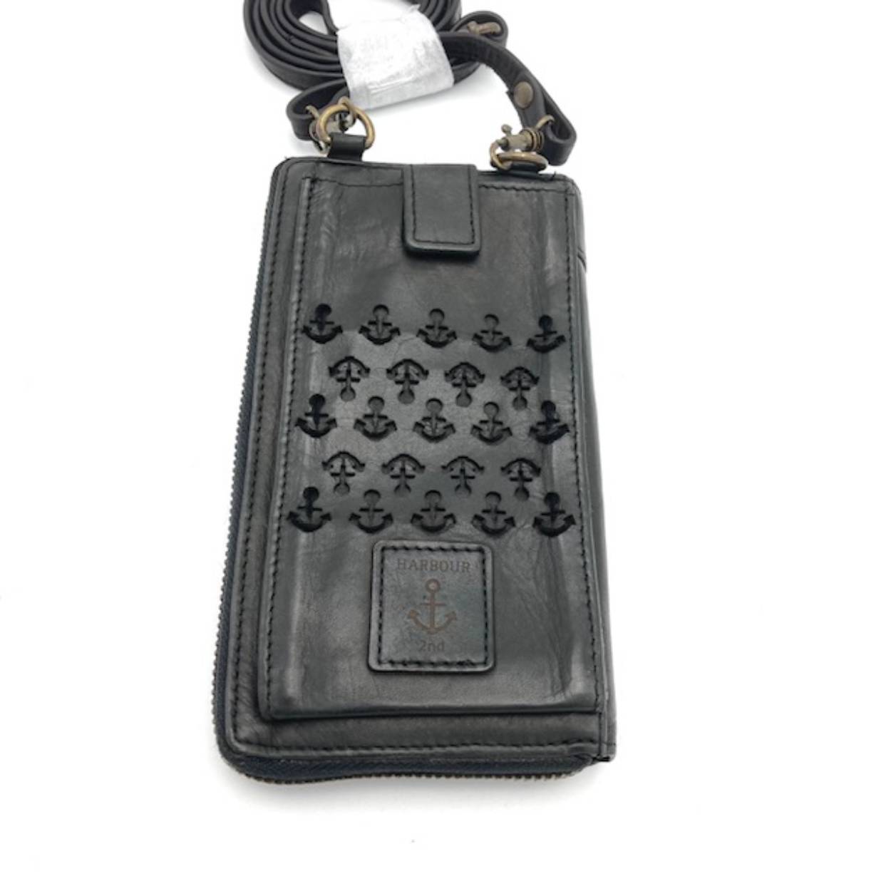 Handig tasje om uw telefoon aan de achterzijde in op te bergen. Dit vakjes wordt gesloten door middel van klitten band. Onder de rits twee ruimtes voor papiergeld. 8 vakjes voor bankkaarten en een ritsvak voor kleingeld. Daarnaast nog twee steekvakken voor bonnetjes. Afmetingen: Hoogte 19cm x 10cm breed x 2.5cm diep