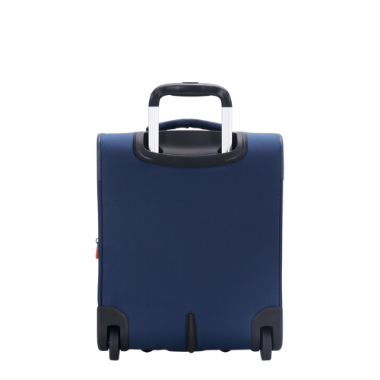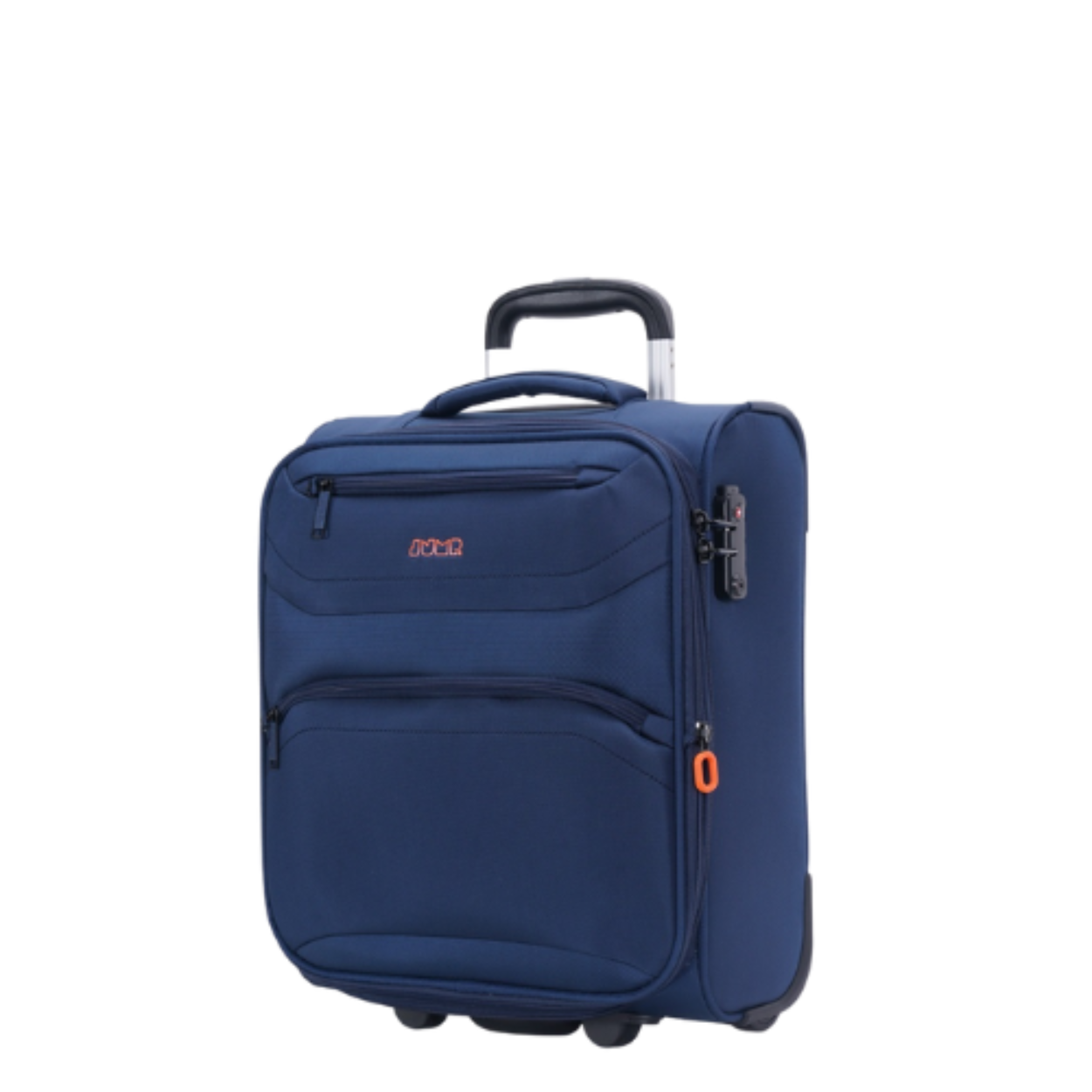 Uitbreidbare minikoffer met 2 wielen, telescopisch handvat en combinatiesluiting. Opbergvakken met ritssluiting aan de voorzijde van de bagage.