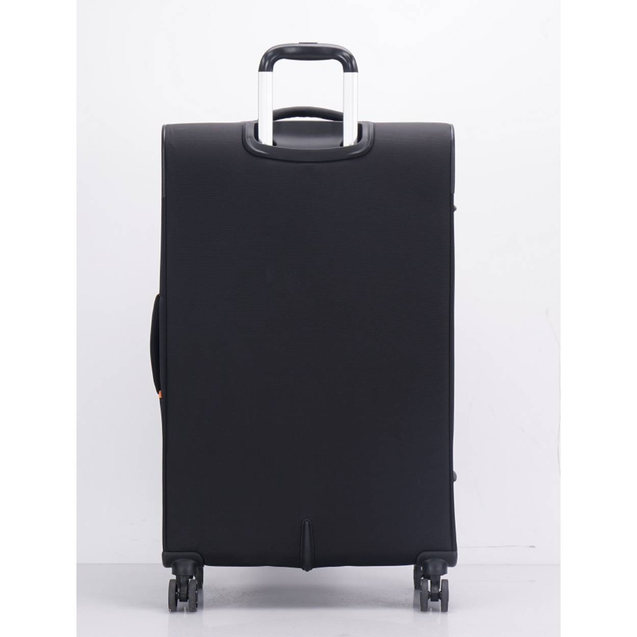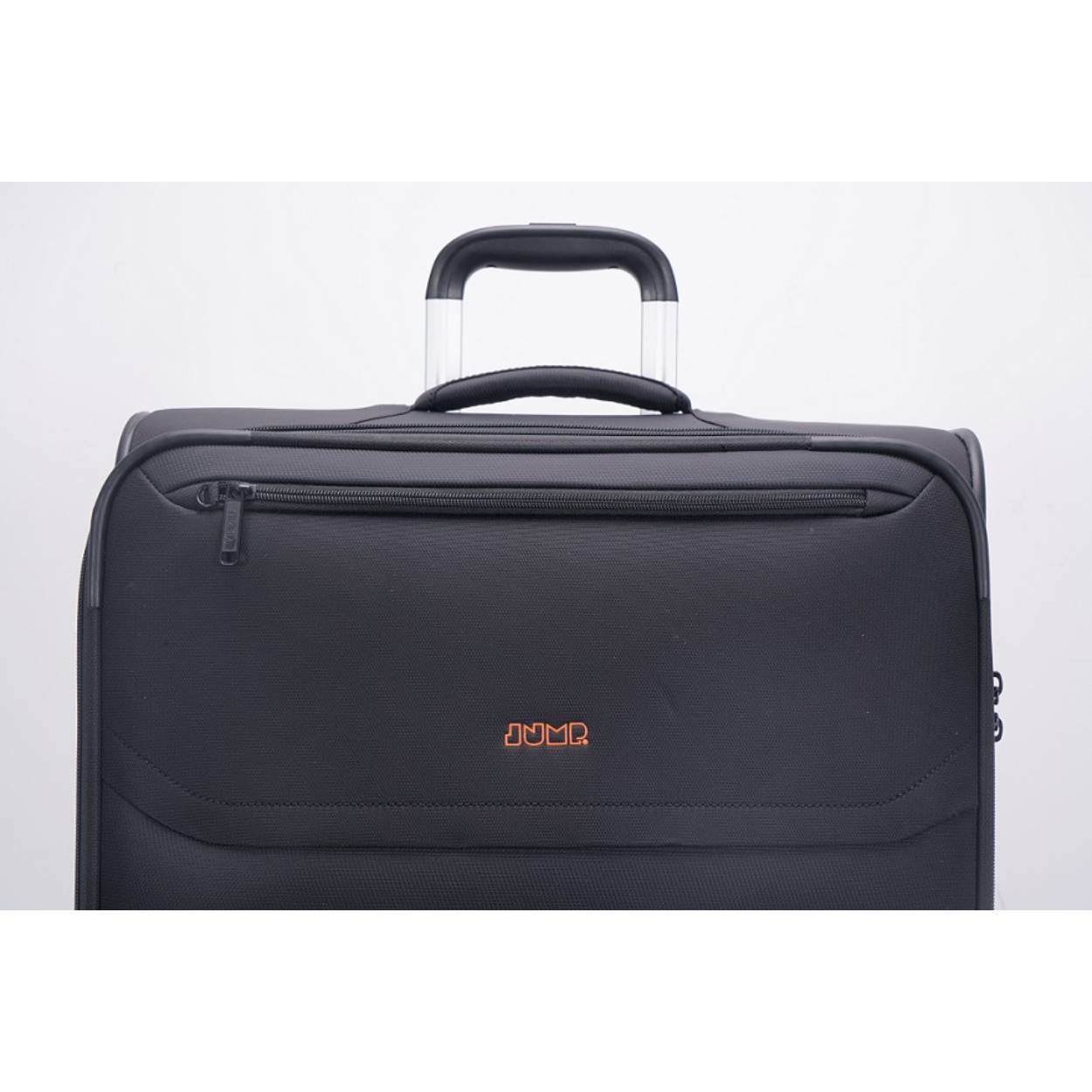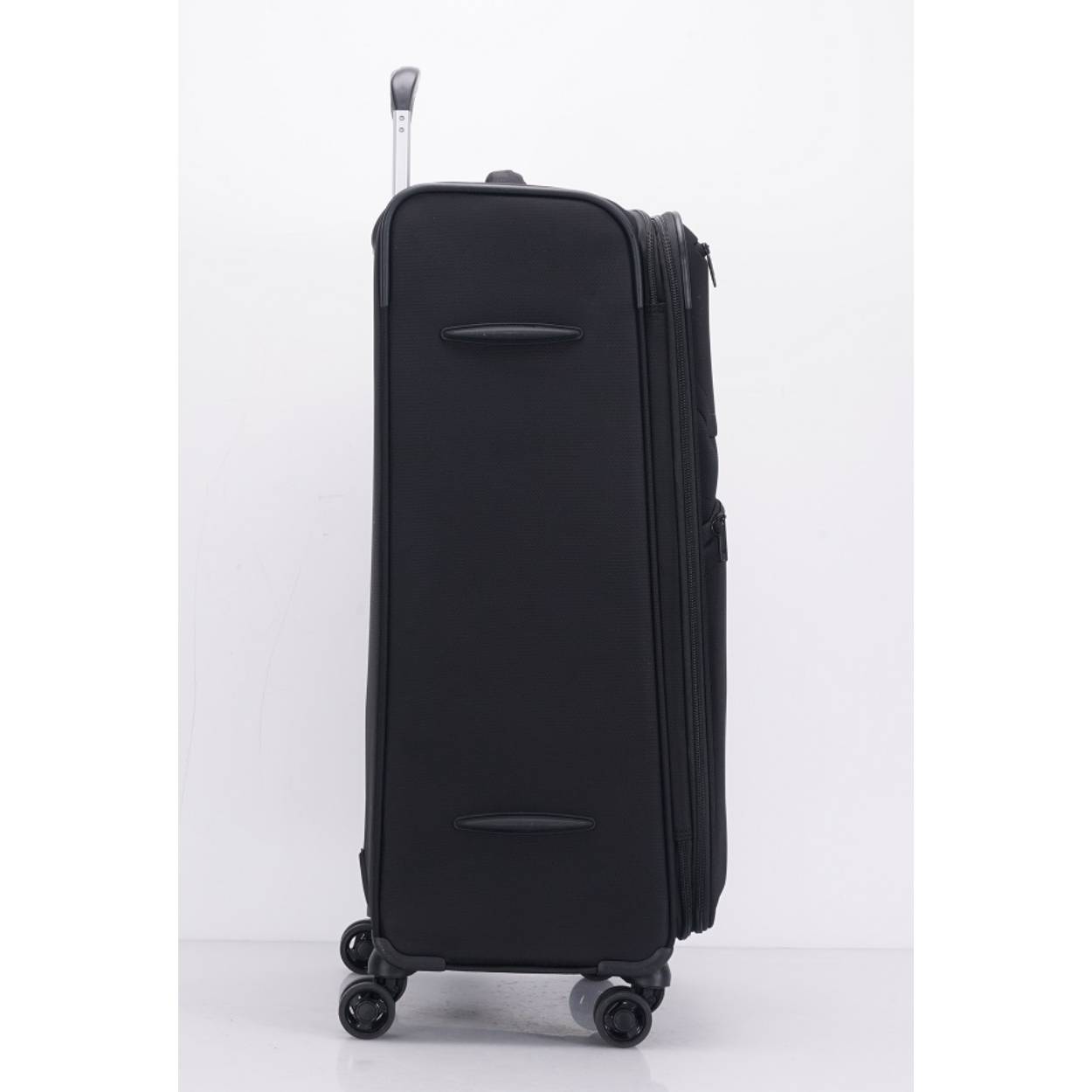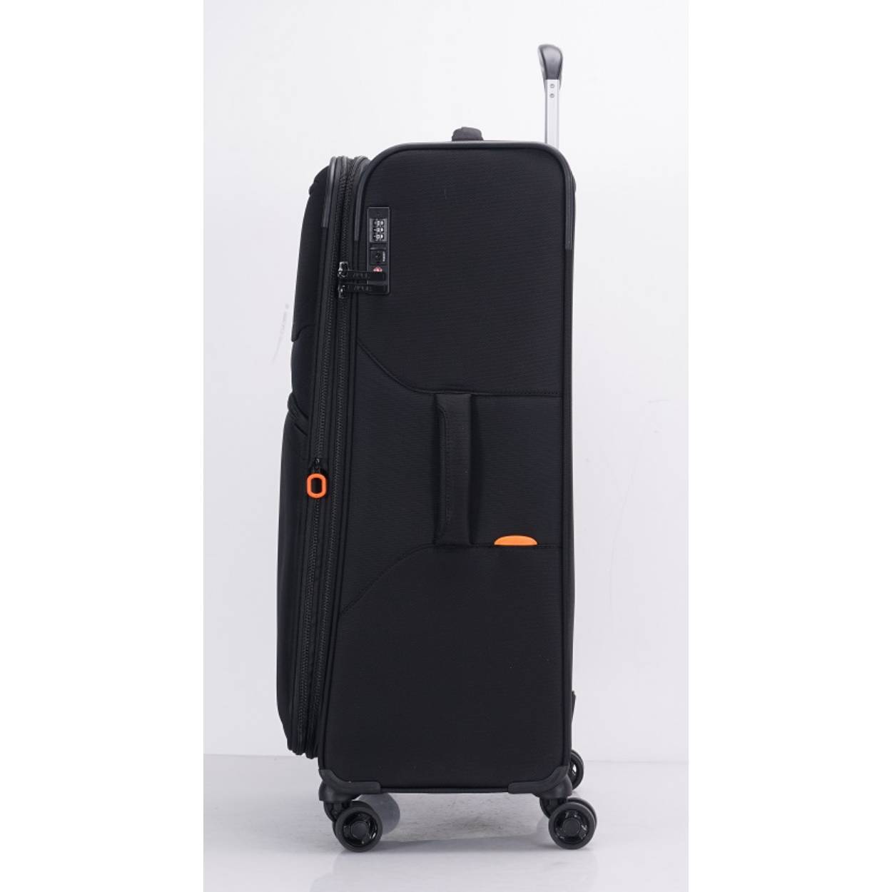 Grote uitbreidbare koffer met 4 wielen, telescopisch handvat en combinatiesluiting. Opbergvakken met ritssluiting aan de voorzijde van de bagage.