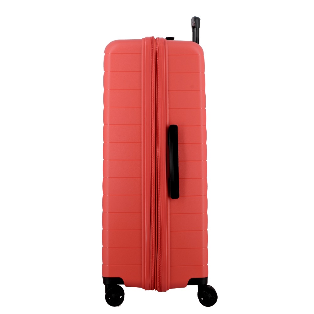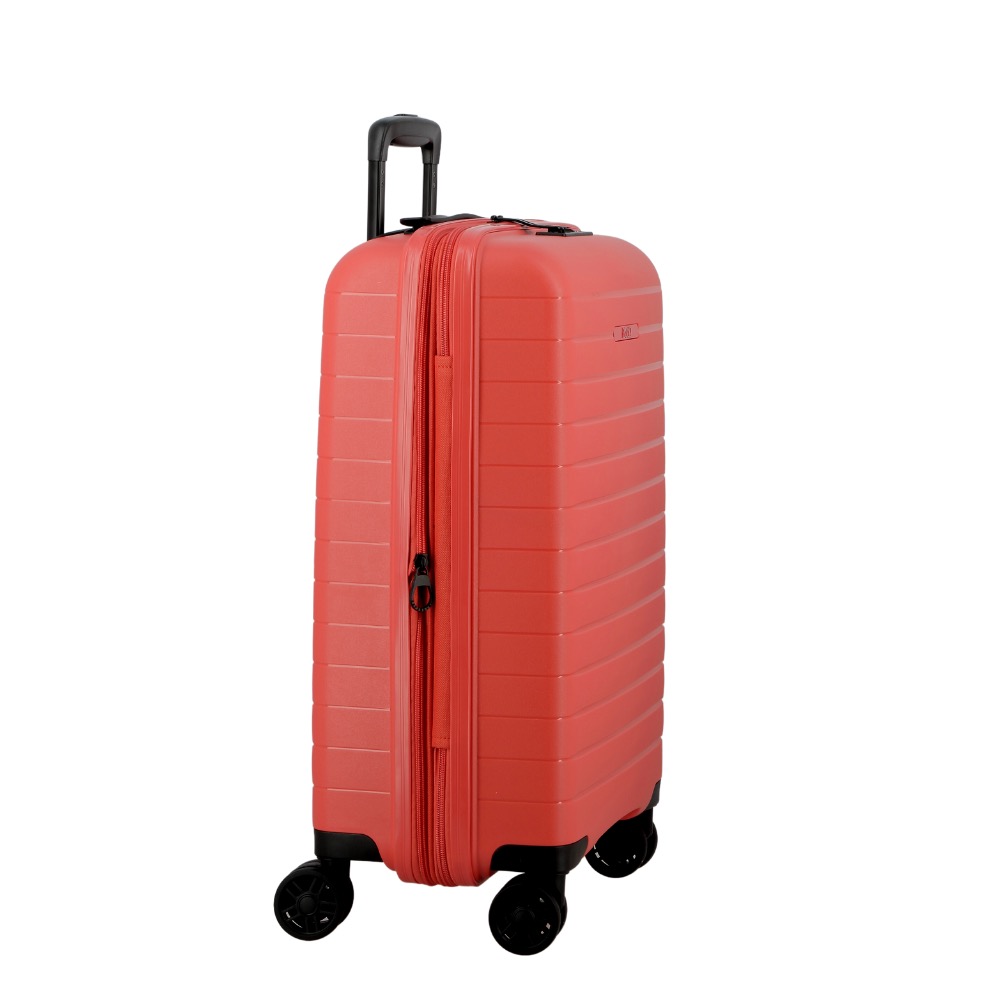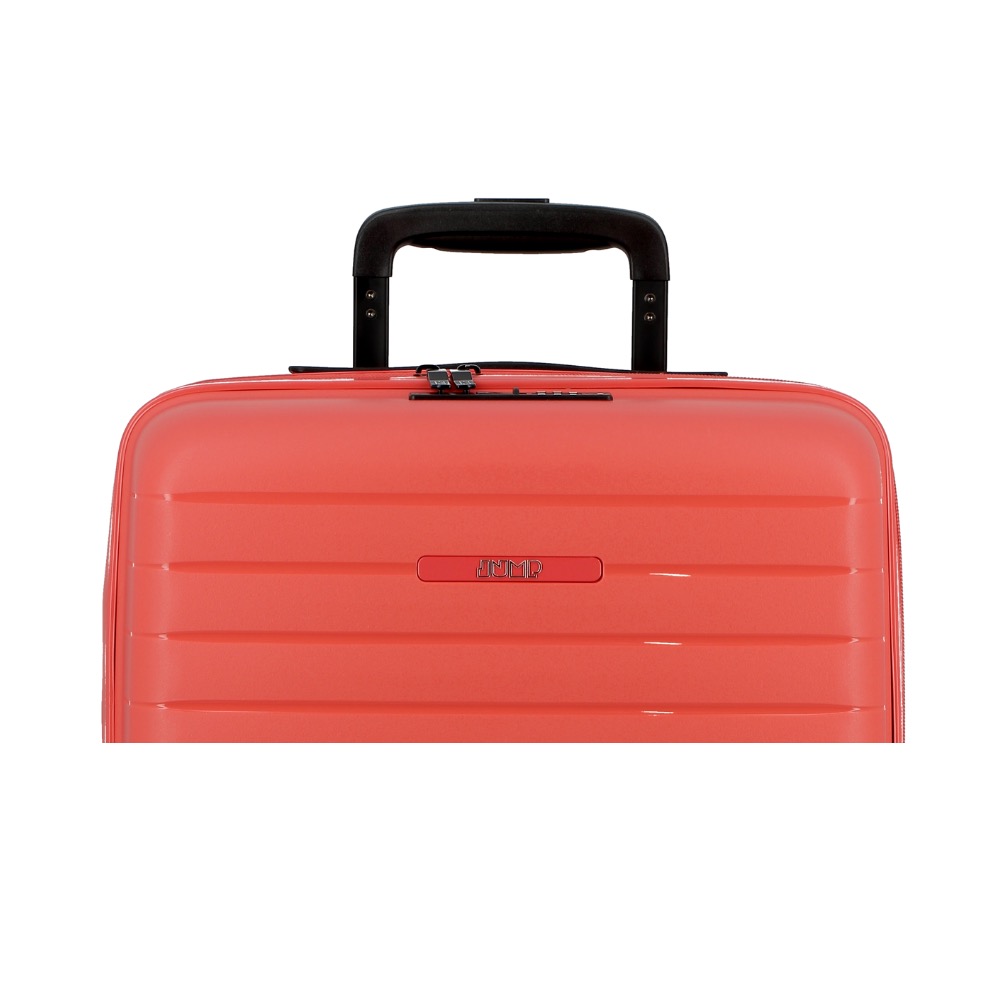 De Jump Striper 77cm Coral is voorzien van vier dubbele wielen, een telescopische handgreep en meerdere handvatten voor gemakkelijk vervoer. De koffer heeft een ruim hoofdcompartiment en praktische interne vakken voor georganiseerde opslag. Het beste manier om te dragen is door de telescopische handgreep omhoog te trekken en deze achter je aan te rollen voor moeiteloos reizen.