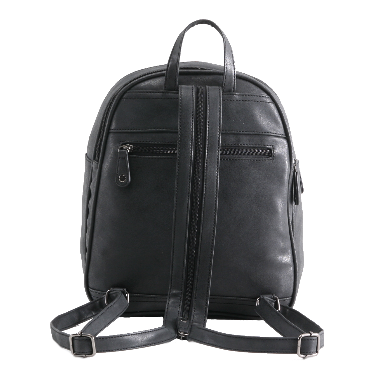 Deze trendy rugzak van Just Dreamz in de kleur zwart heeft een stoere leatherlook uitstraling. Door twee ruime hoofdvakken is deze ideaal te gebruiken voor verschillende gelegenheden. Het interieur van de rugtas bestaat uit een ritsvak, een telefoonvak en nog een extra steekvak. Daarnaast heeft de rugtas een lange lus, waardoor je deze makkelijk kan ophangen. Aan de achterkant bevat de rugzak een extra ritsvak, zodat kleine eigendommen makkelijk op te bergen zijn. De schouderbanden zijn in lengte verstelbaar. Ook twee voorvakken zorgen voor extra opbergruimte.