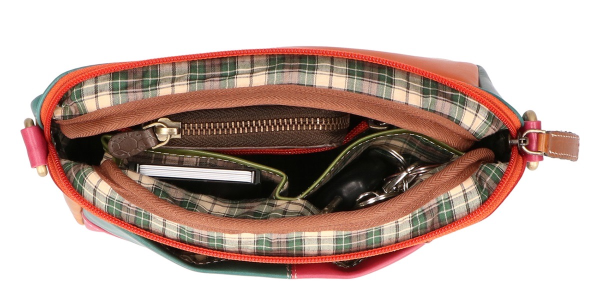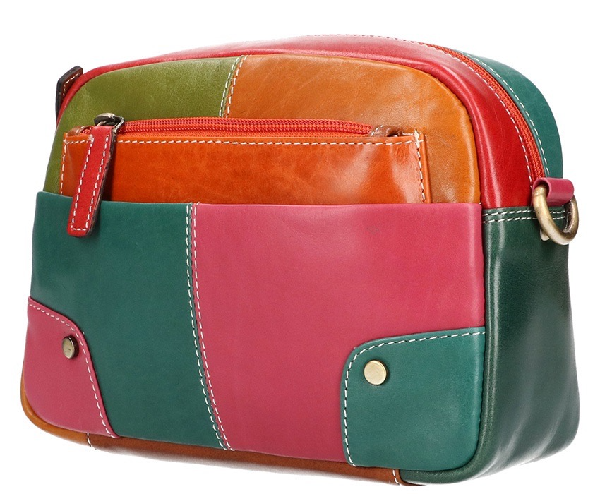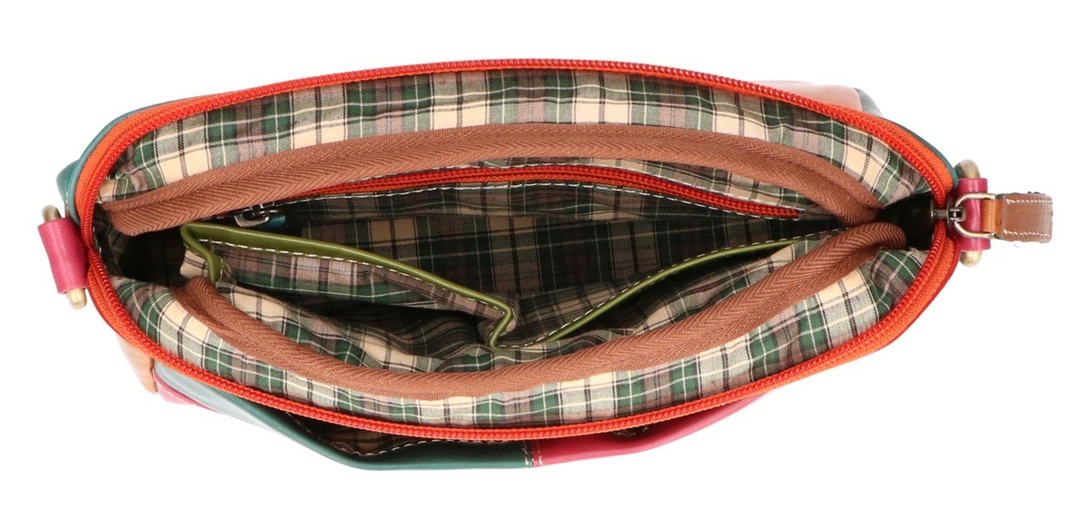 Trendy multicolour tas met een praktische en overzichtelijke indeling. De voorzijde heeft een ritsvak en een steekvak, terwijl de achterkant is voorzien van een extra ritsvak en een veilige topritssluiting.