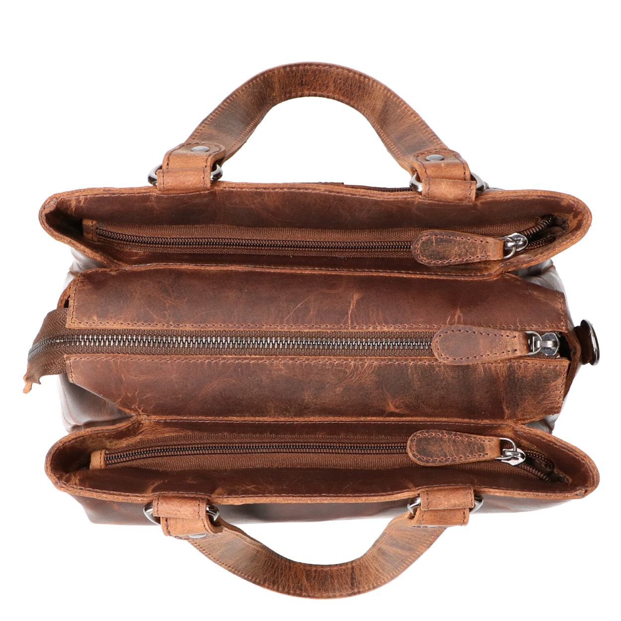 Deze stoere lederen hand/schoudertas van LD Design is voor zien van drie topritsen. Hierdoor kunt in deze damestas prima uw spullen gescheiden opbergen. Verder is deze damestas voorzien van twee handgrepen en een lange afneembare schouderriem om de cross body te kunnen dragen.