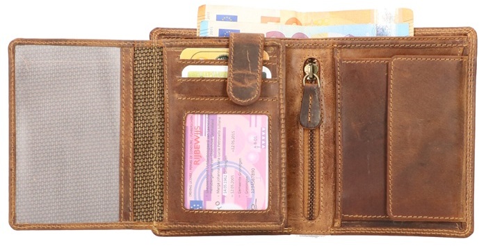 Mooie portemonnee geschikt voor 13 bankkaarten. Papiergeld en muntgeld