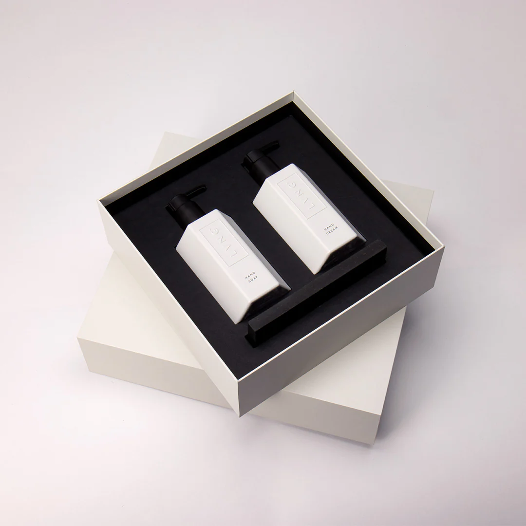 Handzeep, handcrème en een bijpassend plateau. Reinigt mild en ruikt subtiel. Vervaardigt van essentiële oliën en natuurlijke grondstoffen als aloë vera, sheaboter en vitamine E.