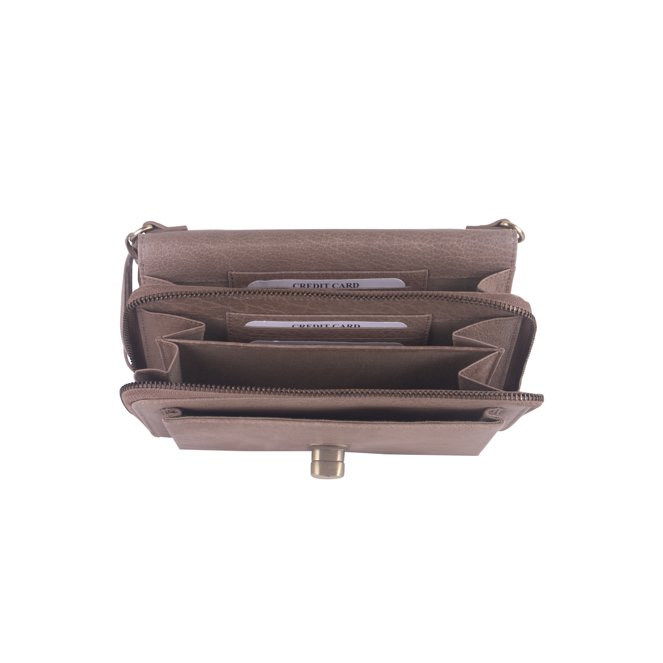 Bovenop de tas zit een handvat, leuk als handtas te dragen, wil je hem cross body, klap je het handvat gewoon weer in, is dat niet handig?