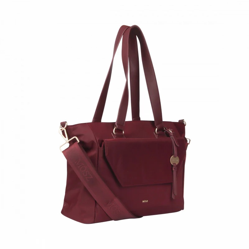 Op zoek naar een dames laptoptas die zowel stijlvol als superpraktisch is? De Denise dames laptoptas shopper in aubergine is dé tas voor vrouwen die durven op te vallen. Deze tas combineert een gedurfd design met tijdloze luxe. Het zwarte glanzende nylon, afgewerkt met matte gouden details, zorgt voor de herkenbare premium MŌSZ-look.
