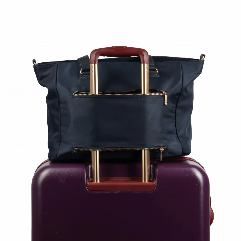 Reis je veel? Dan is de trolleyband aan de achterkant een must-have: schuif de tas eenvoudig over je kofferhandvat.