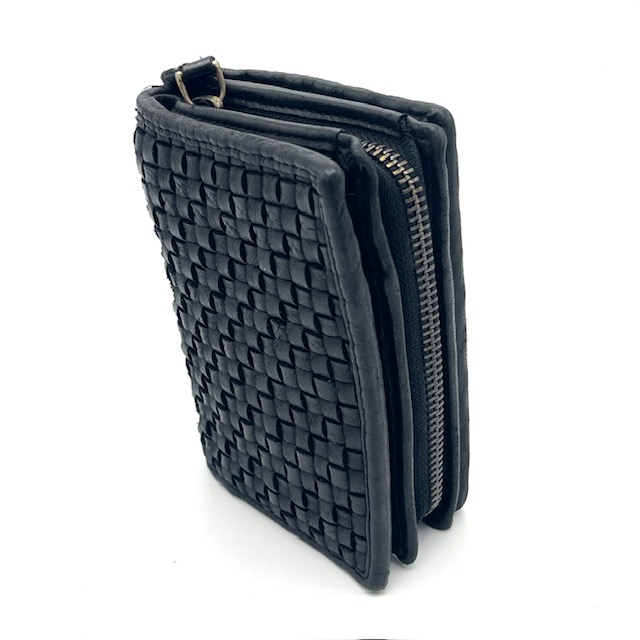 Dit gevlochten zwart portemonnee met eigen label is gemaakt van hoogwaardig materiaal en heeft een stijlvol design. Het heeft meerdere vakken voor pasjes, munten en briefgeld, waardoor het perfect is voor dagelijks gebruik. Draag het als een statement accessoire bij je favoriete tas of in je hand als een chique clutch voor een avondje uit. Maak je look compleet met deze veelzijdige portemonnee!