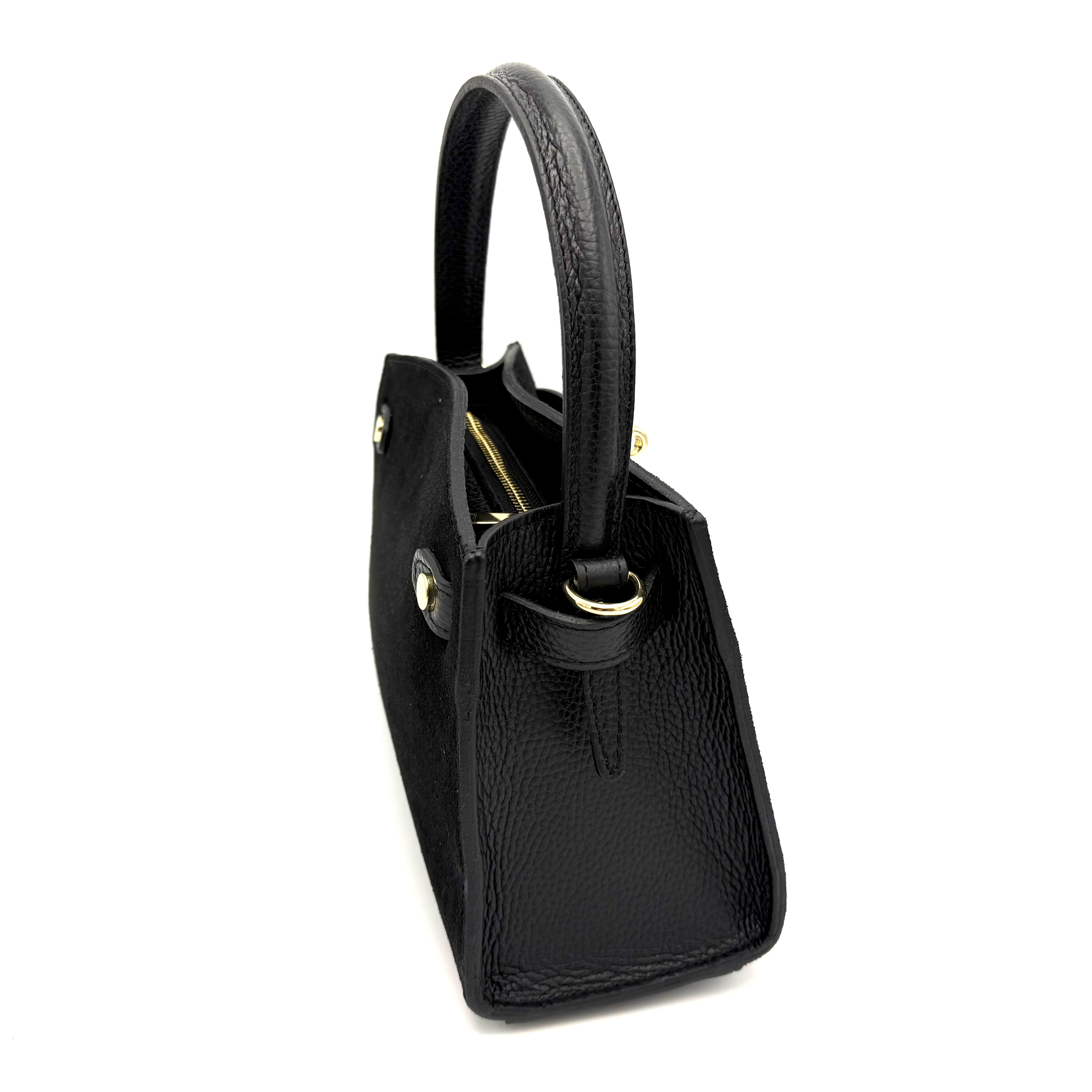 Leren Handtas met Suède Handgreep – Gemaakt in Italië