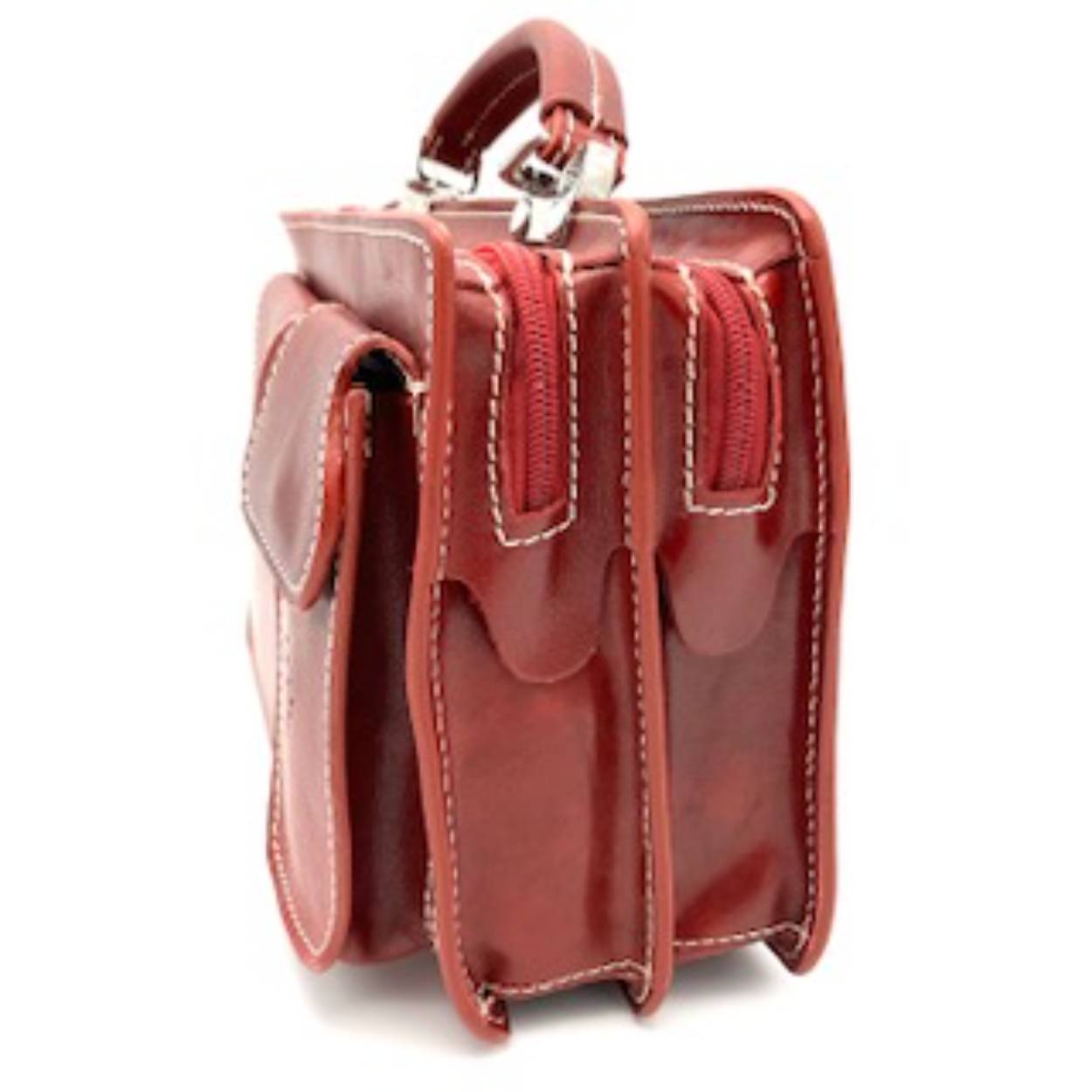 Mooie rund lederen handtas gemaakt in Florence. Tevens te gebruiken met een afneembare schouderriem. De tas bestaat uit twee hoofdcompartimenten welke door middel van rits kan worden afgesloten. De voorkant is voorzien van twee kleine vakken en de achterkant is voorzien van ritssluiting.