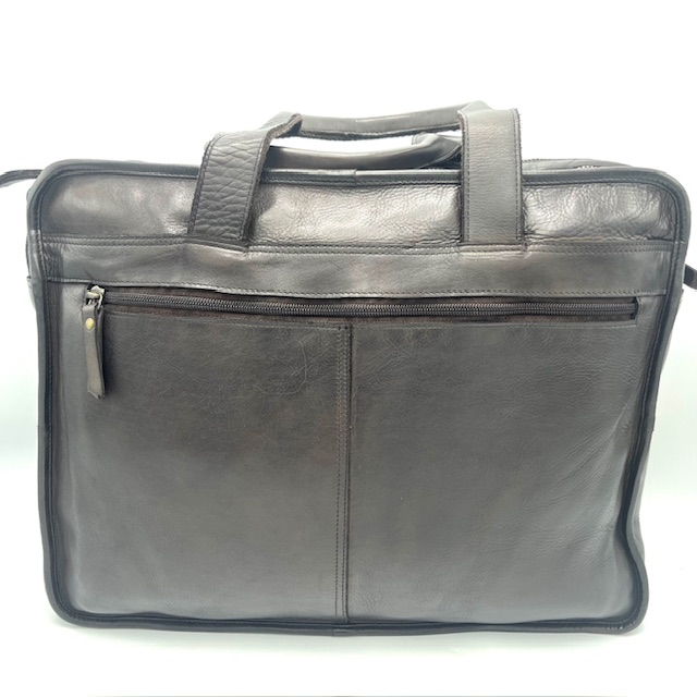 Deze werktas heeft twee grote hoofdvakken, een achtervak en diverse voorvakken.