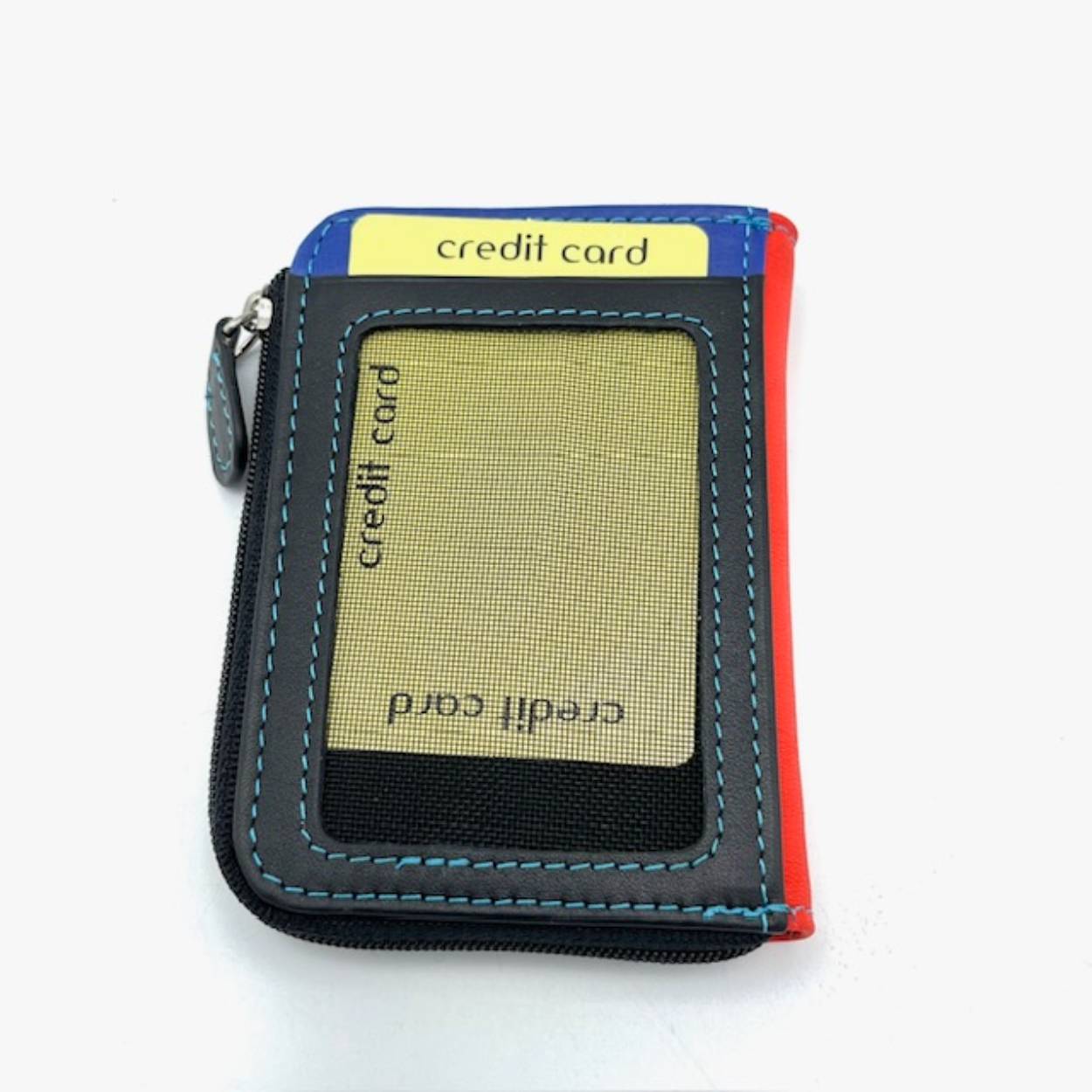 Kleine portemonnee geschikt om 4 cc op te bergen en een dubbel vak onder de rits voor kleingeld en papier geld.