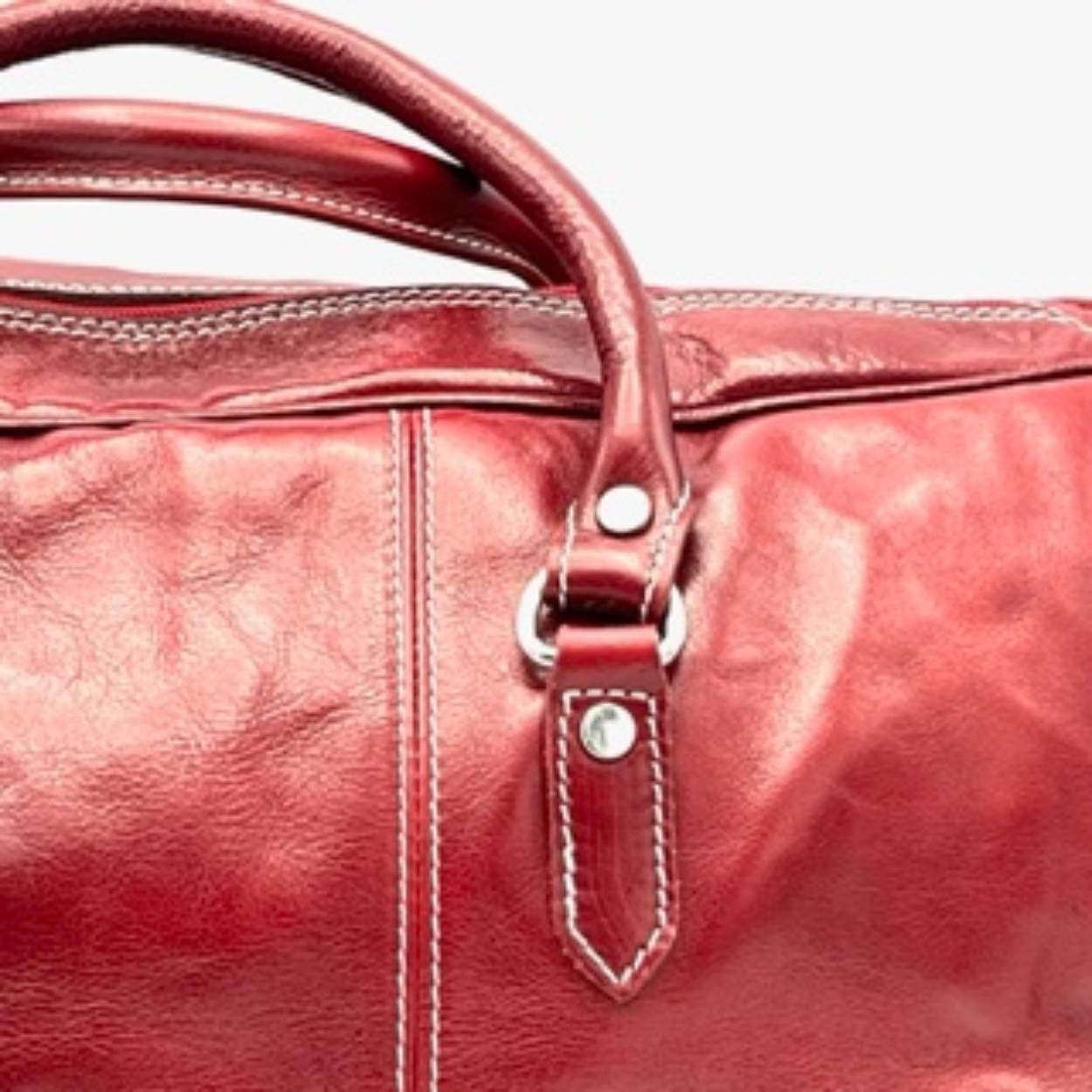 Massief volrund lederen reistas welke gemaakt is in Italie. De binnenzijde is voorzien van twee steekvakken grootvak en een ritsvak.