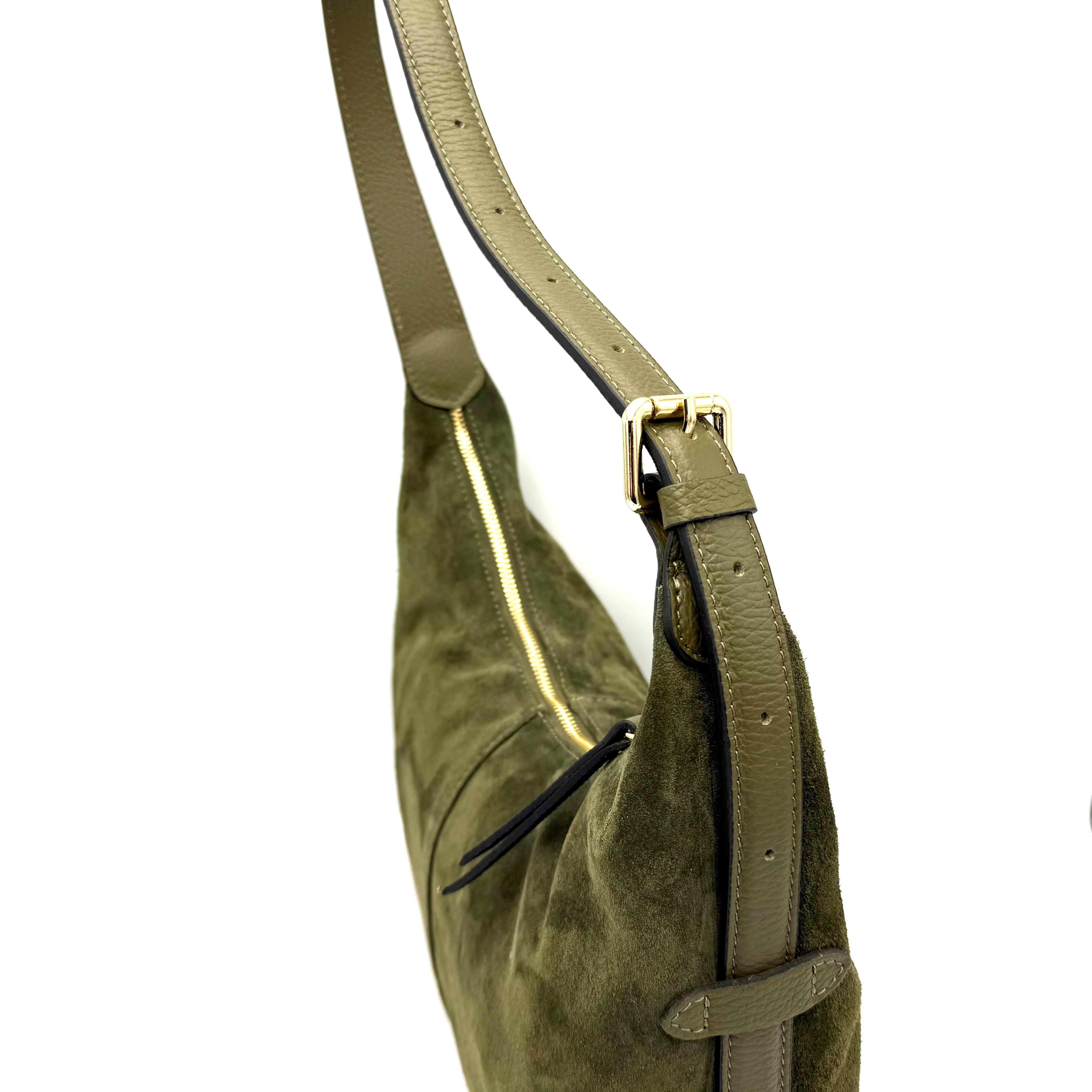 Luxe Italiaanse Schoudertas van Suède en Dollaro Leer – Tijdloze Elegantie