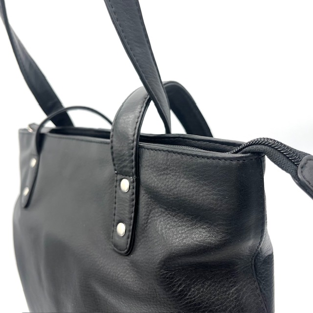 Deze zwarte nappa tas heeft een stijlvol ontwerp met bronskleurige accenten en een handige ritssluiting. Het heeft een ruim hoofdvak en een compact binnenvak met rits. Daarnaast twee handige steekvakken voor bv uw telefoon in op te bergen.Draag deze tas kort op uw schouder voor een trendy look. Perfect voor elke gelegenheid!