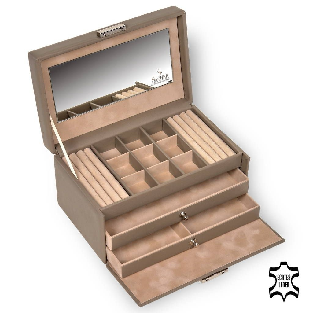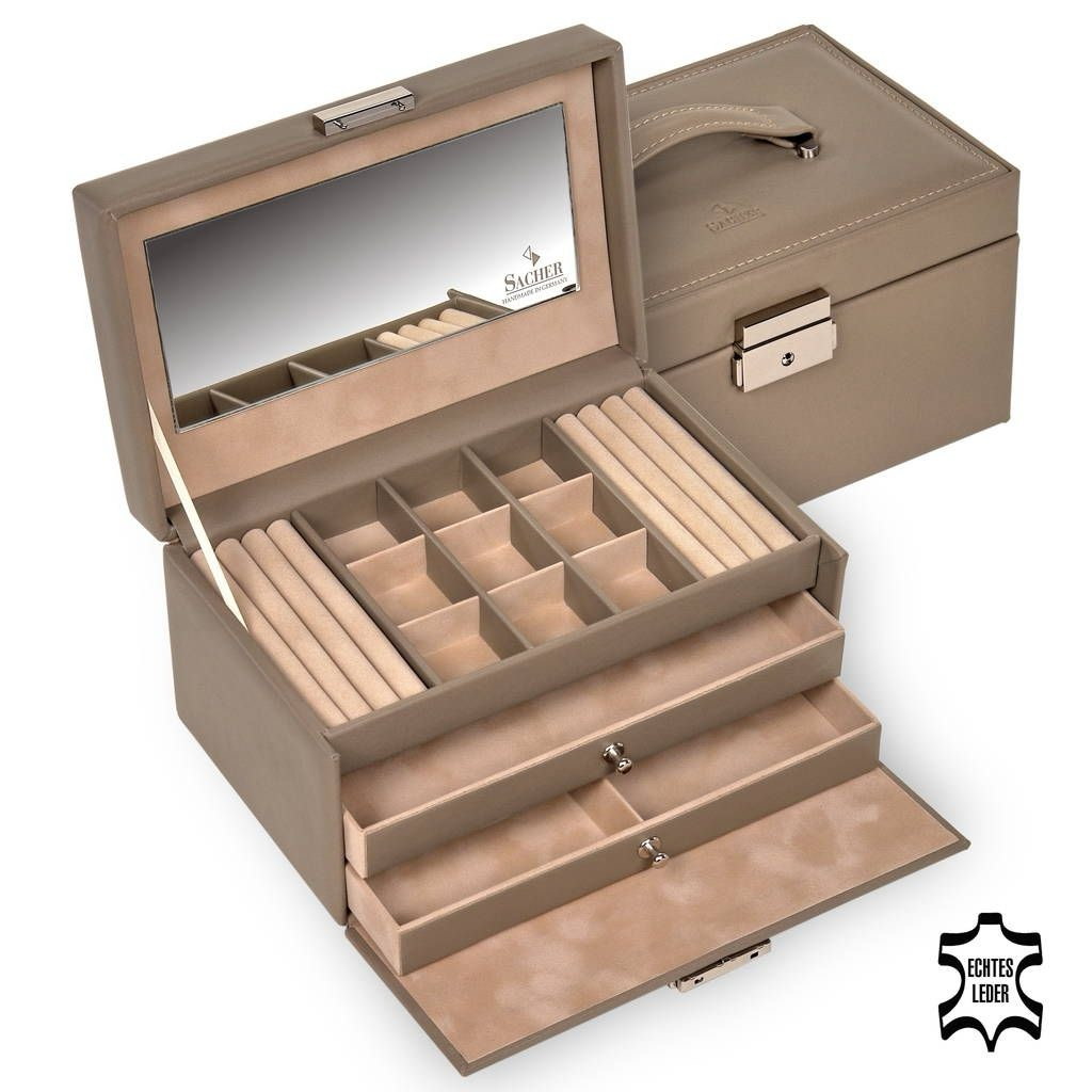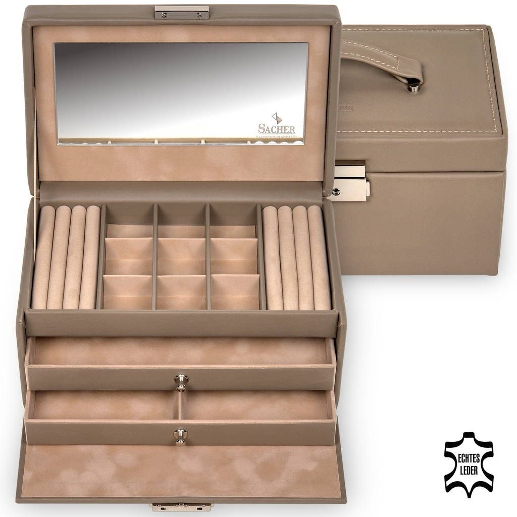 SACHER Sieradenkoffer Elly – nature taupe | Echt leer | Handmade in Germany