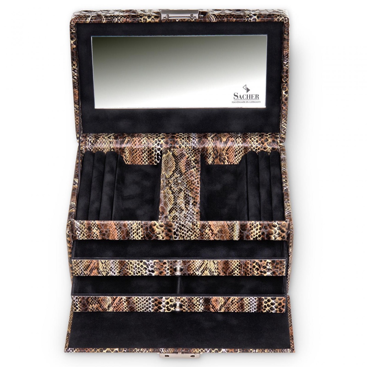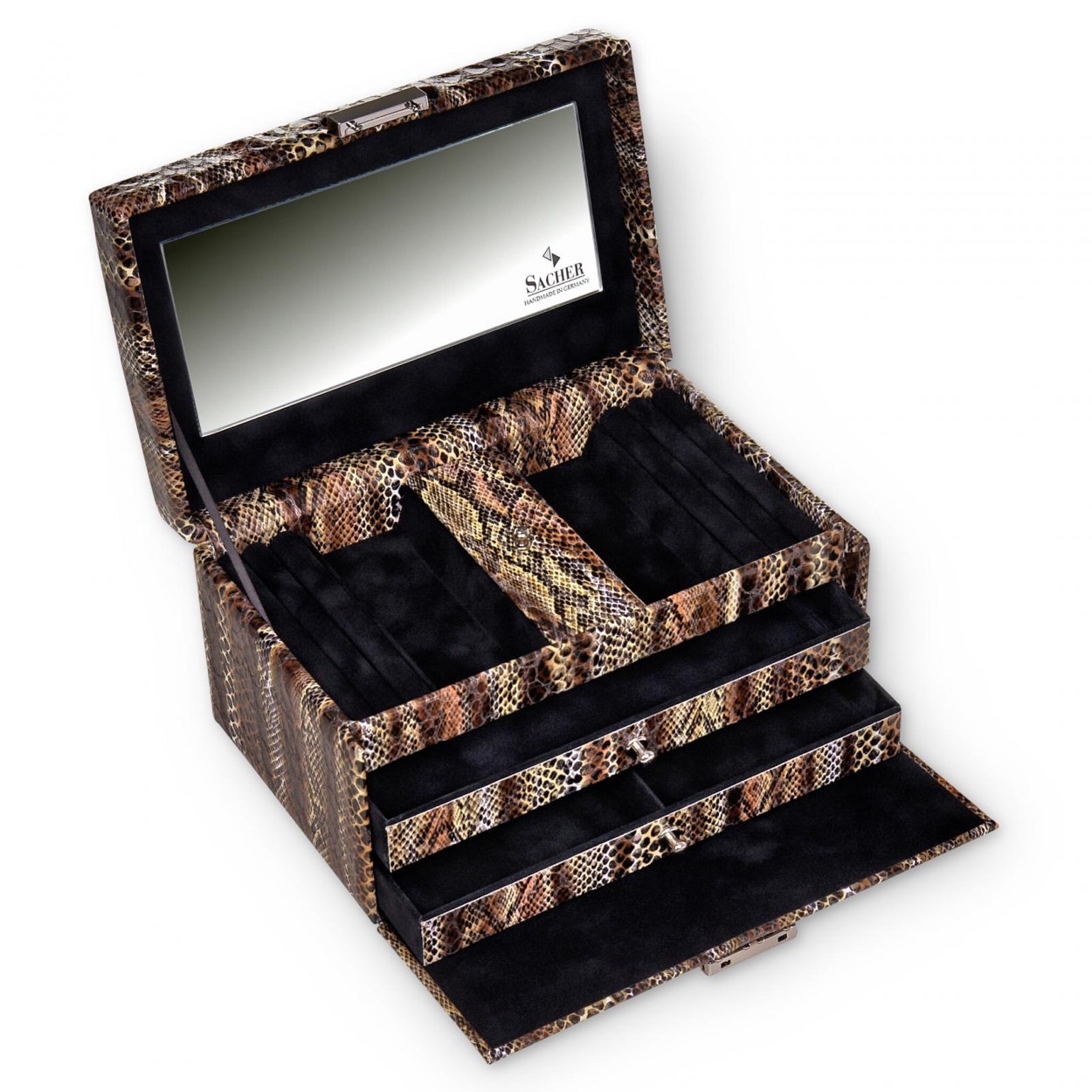 Model Eva van Sacher is voorzien van een bijzondere Python look. 100% handgemaakt product in Duitsland.