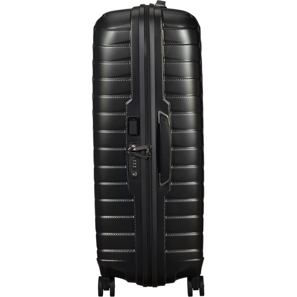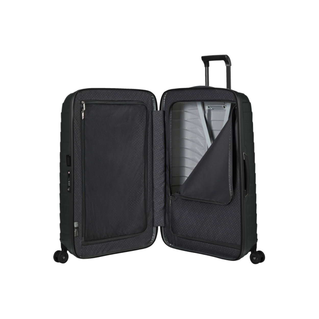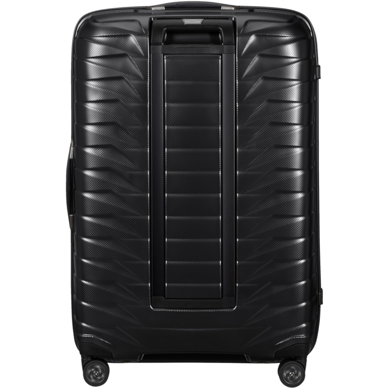 Ontdek een nieuwe manier van reizen met Proxis, de koffer voor topprestaties. De schalen zijn vervaardigd uit Roxkin™, een exclusief materiaal uit meerdere lagen dat Samsonite zelf heeft ontwikkeld. Het neemt opnieuw zijn oorspronkelijke vorm aan en is opvallend stevig, veerkrachtig en licht. De koffer springt in het oog door zijn geraffineerde design en is speciaal ontworpen om aan al jouw behoeften te voldoen. Als je voor Proxis kiest, profiteer je met het nieuwe wecare programma van Samsonite bovendien van uitstekende ondersteuning en fantastische voordelen tijdens én na de garantieperiode. SPECIFICATIES Garantie 10 jaar beperkte wereldwijde garantie Model Spinner (4 wielen) Kleur Zwart Materiaal Roxkin™ (Polypropylene) Afmetingen 75 x 51 x 31 cm Volume 98 L In Europa vervaardigd Ja BUITENKANT Categorie Hard Slot TSA Ritsen Ja Handvatten Bovenhandvat(ten), zijhandvat(ten) & bodemhandvat(ten) Trekstang Dubbele trekstang Wielen 4 wielen Type wielen Soepele wielen zorgen voor extra comfort tijdens het reizen Adreslabel Personaliseer jouw koffer met de personalisatie tag BINNENKANT Onderste compartiment bodem compartiment met tussenschot en inpak riemen Bovenste compartiment Ja Tussenschot In bovenste & onderste compartiment, met zak Inpak riemen Ja