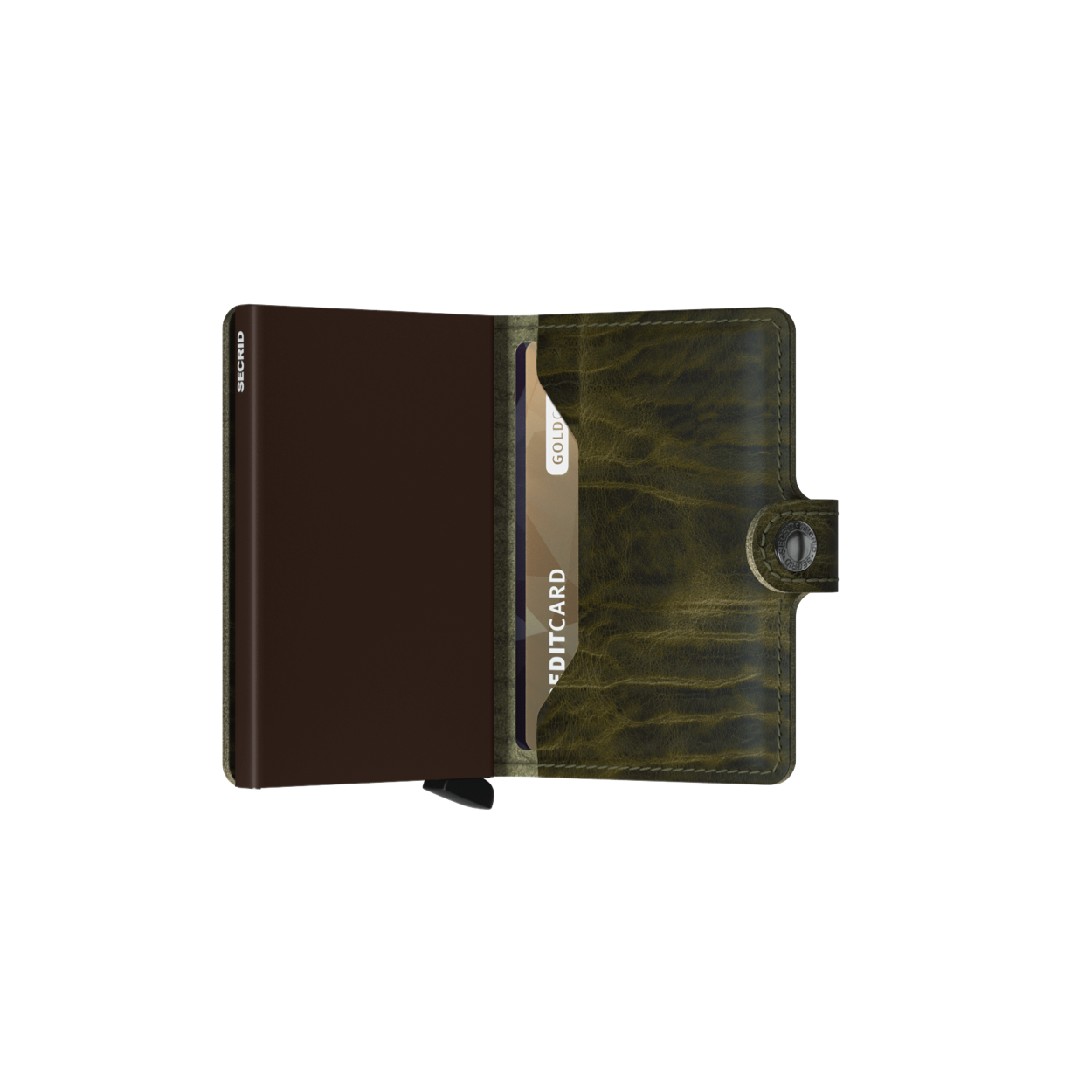 Miniwallet Dutch Martin Olive is volnerf leer, gemaakt in Nederland van Europese runderhuiden.