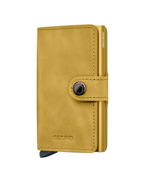 Miniwallet Vintage Yellow is gecorrigeerd leer, gemaakt in Nederland van Europese runderhuiden.