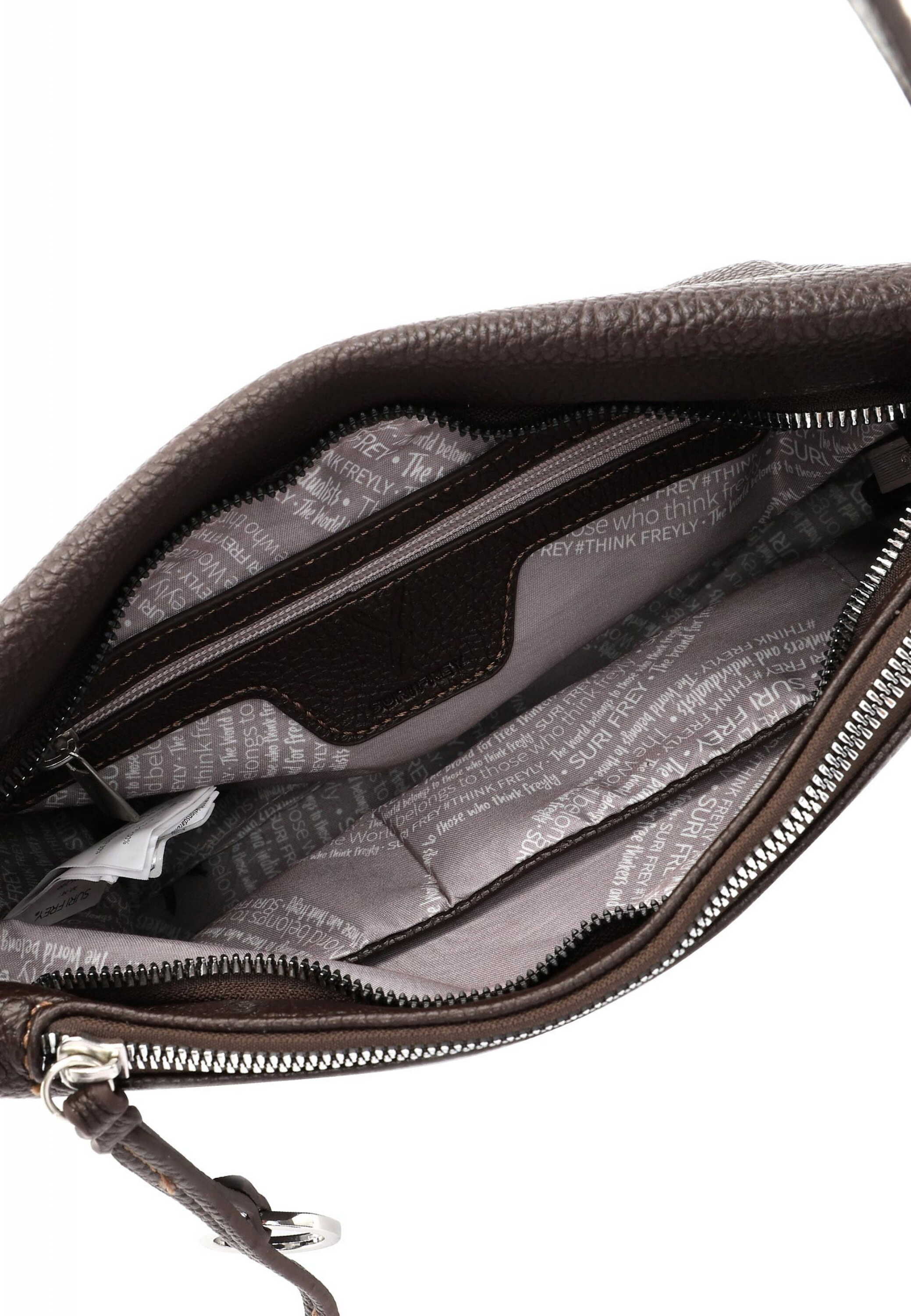 Deze SuriFrey SFY Debby schoudertas in Brown heeft een tijdloos ontwerp met goudkleurige accenten en is gemaakt van hoogwaardig kunstleer. De tas heeft een ruim hoofdcompartiment en meerdere handige vakken voor optimale organisatie. Draag de tas comfortabel over je schouder of crossbody met de verstelbare schouderband. De perfecte tas voor alledaags gebruik!