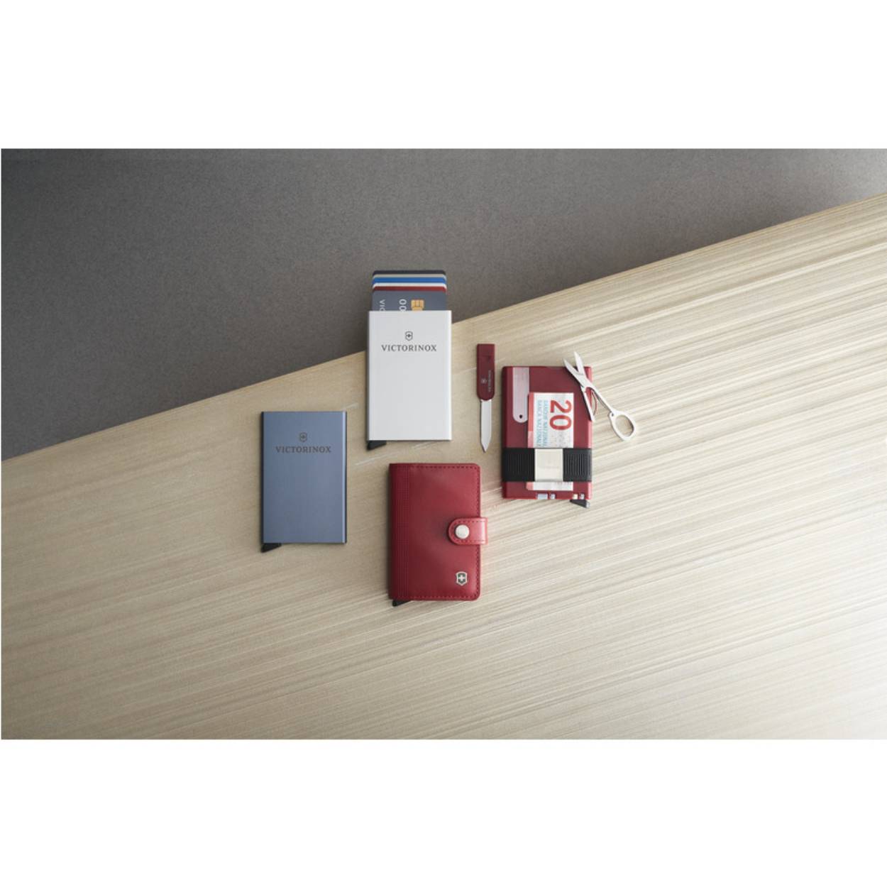 6 pasjes opbergen in de hardcase en muntjes achter de rits.