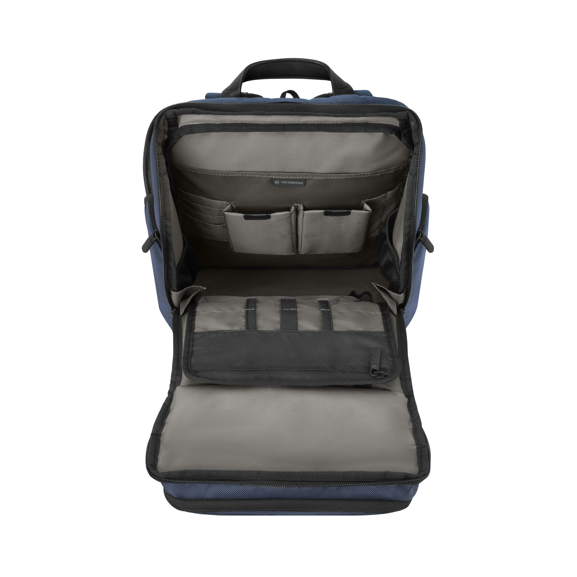 Deze Victorinox Altmont Professional Fliptop Laptop Backpack in Navy Blue heeft een fliptop opening, gewatteerd laptopvak, organisatievakken en een handige waterfles zak. Draag het comfortabel met de gewatteerde schouderbanden en ademende achterkant. De beste manier om het te dragen is over beide schouders voor een gelijkmatige gewichtsverdeling. Ga stijlvol en georganiseerd op pad met deze veelzijdige rugzak!